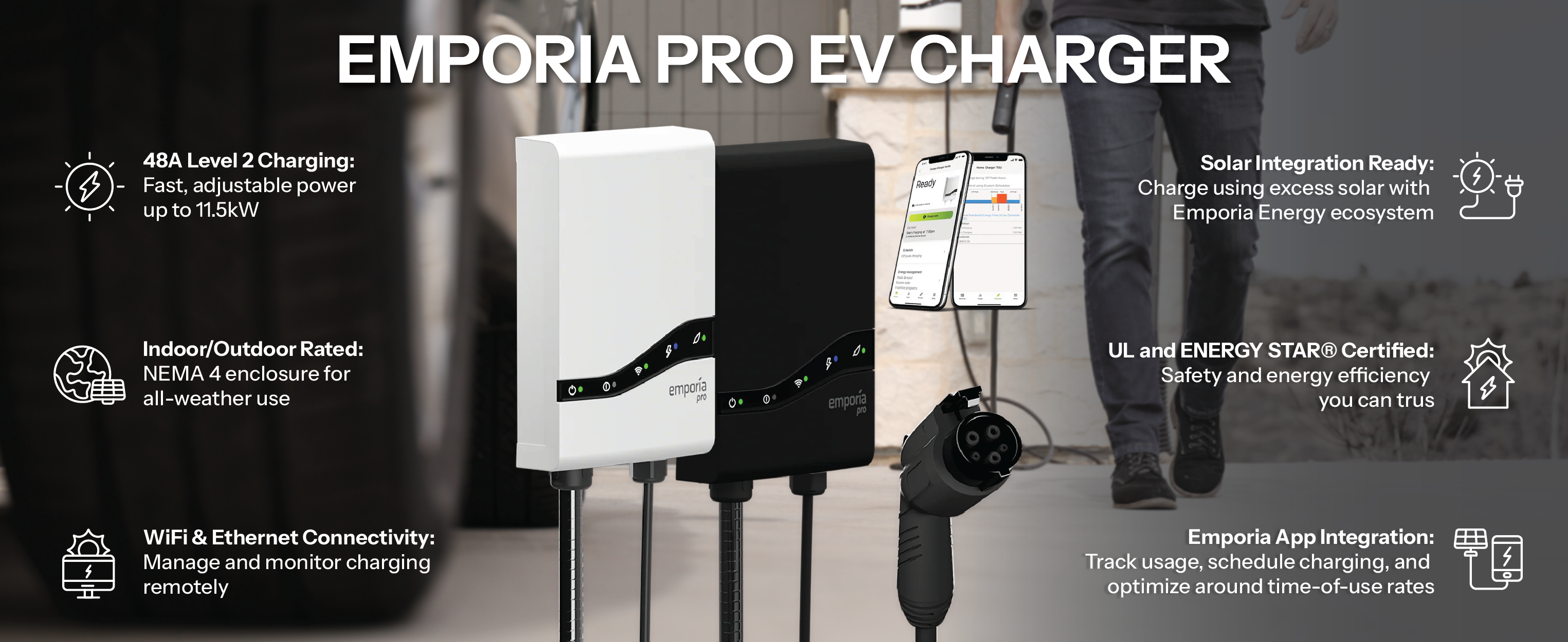 Smart App Control – Schedule charging, track status, and adjust settings from the Emporia app.